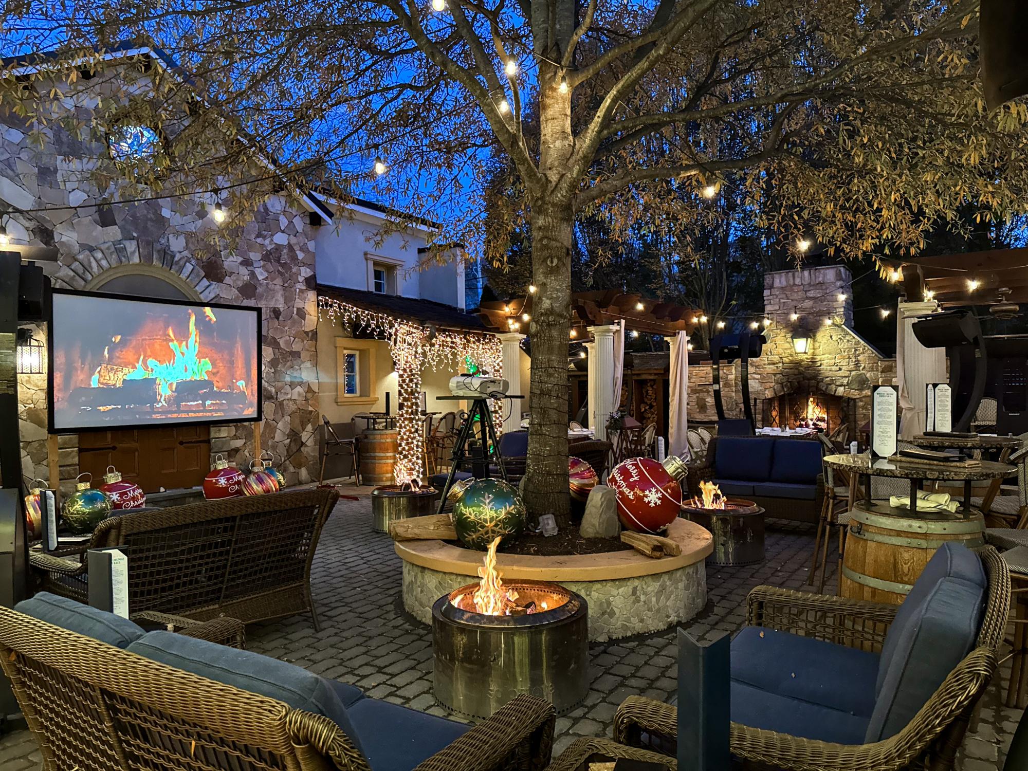 Step into a winter wonderland as our beloved Piazza transforms into a cozy lounge for the colder months. Where summer once brought breezy al fresco dining, winter ushers in a warm and inviting retreat. Picture yourself sinking into plush couches with a blanket, surrounded by the glow of fire pits and heaters that ward off the chill. Savor every sip of our specialty cocktails or homemade hot chocolate, perfectly paired with a s’mores kit for a nostalgic treat.